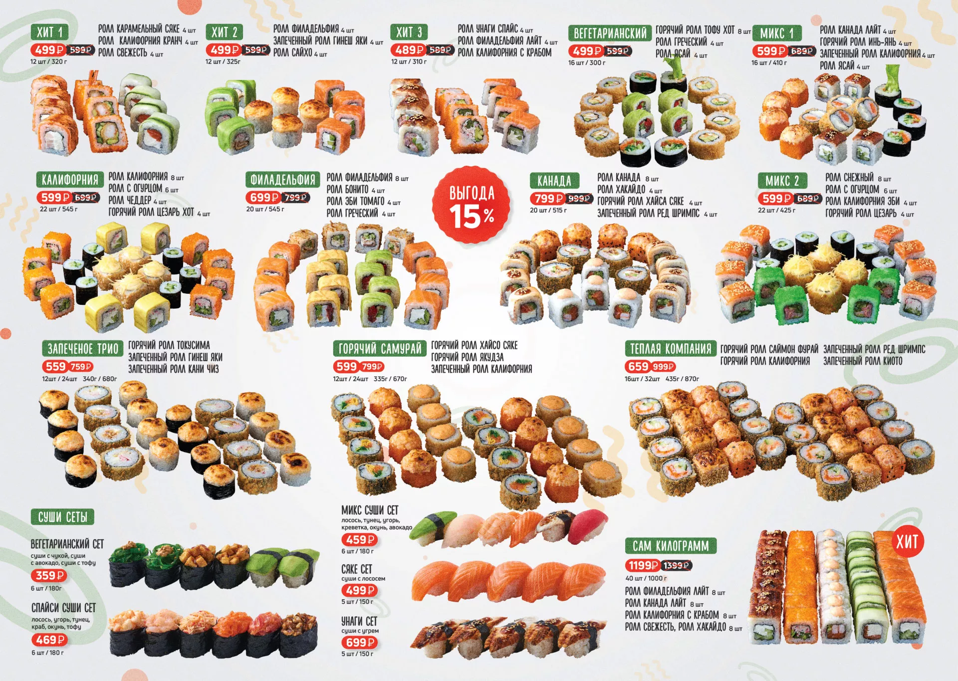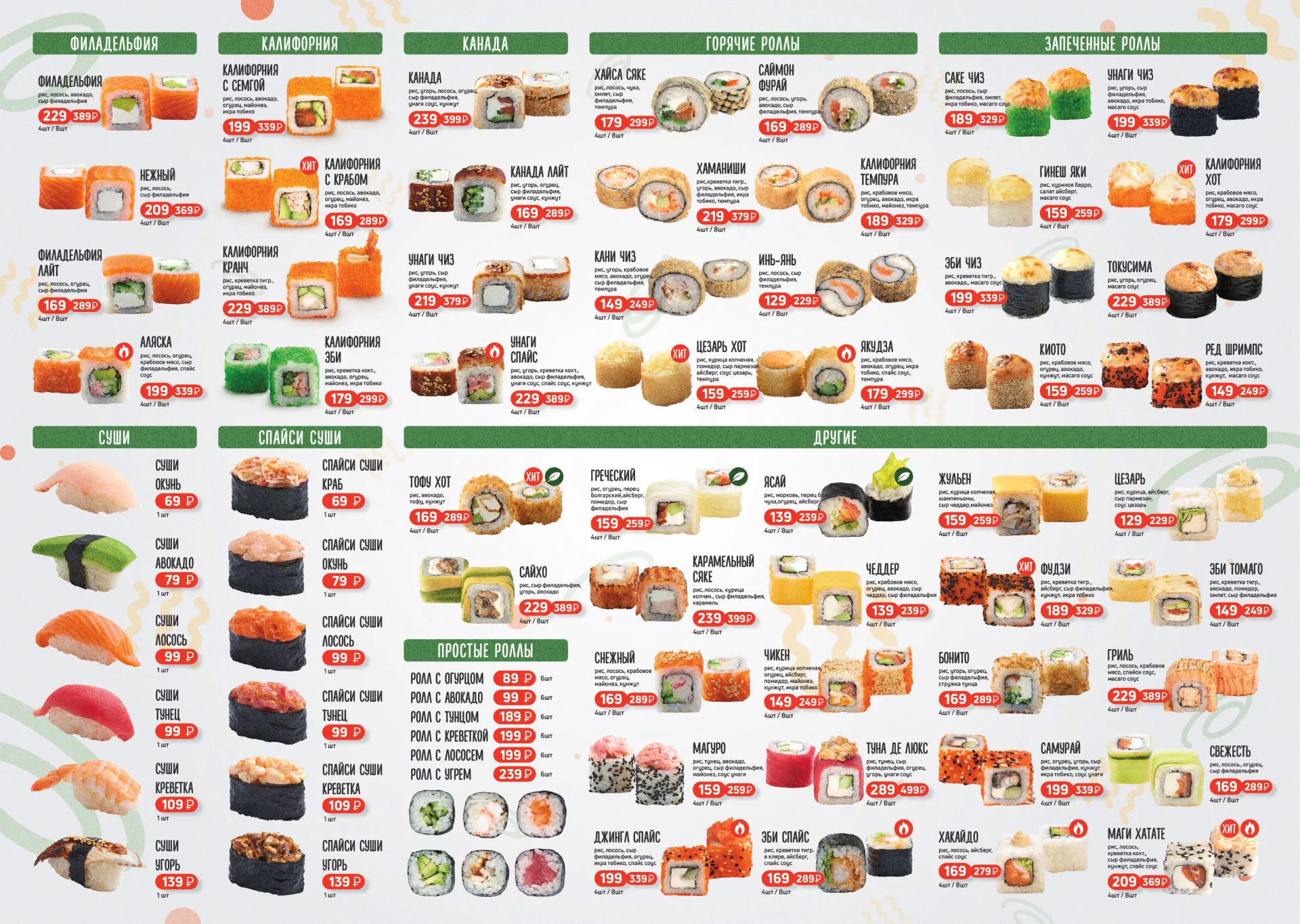 Оформление меню суши-бара «Roll Wok Club» в Мысках